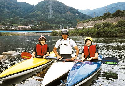 | 大山王国 特集 川で遊ぶ リバーカヤックに乗って水上散歩 一度でも体験すると、その素晴らしい世界のとりこになるといわれるカヌー。子どもは大いなる冒険におとなになりおとなは川遊びを思い出して子どもに帰る。いつのまにか自然とひとつになって、心地よい浮遊感にハマッていた。